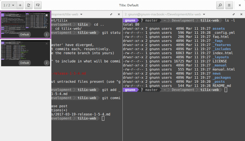 Tilix 终端提供了与 Guake 类似的下拉式体验 —— 但它允许你在平铺模式下拥有多个终端窗口。