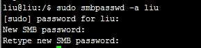 sudo smbpasswd -a liu