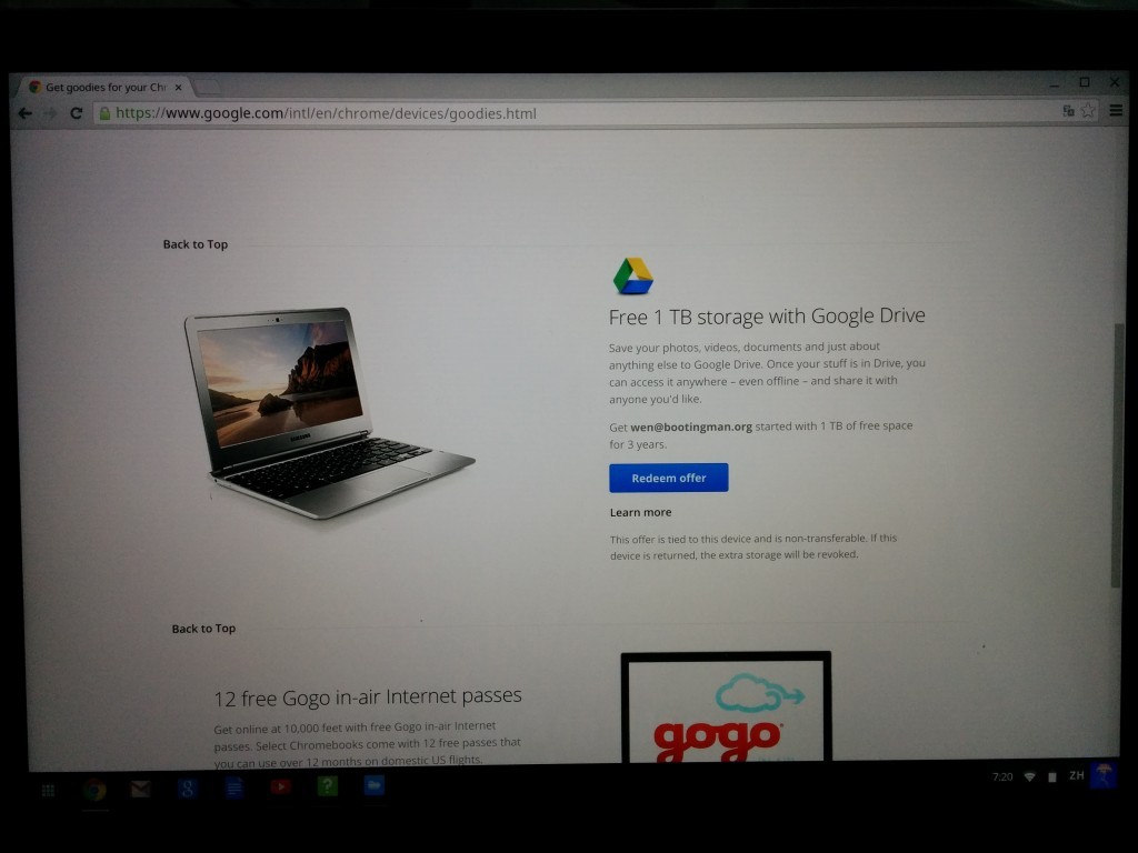 传说中的Chromebook Pixel赠送1TB Google Drive空间,但是折腾了好久最好没有成功