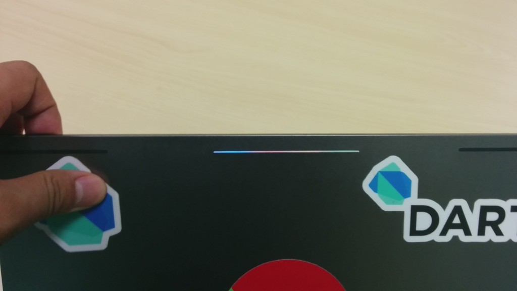 我觉得Chomebook Pixel最漂亮的地方,A壳顶盖一个长条LED灯,在开机的时候可以发出chrome logo三种颜色的彩色光