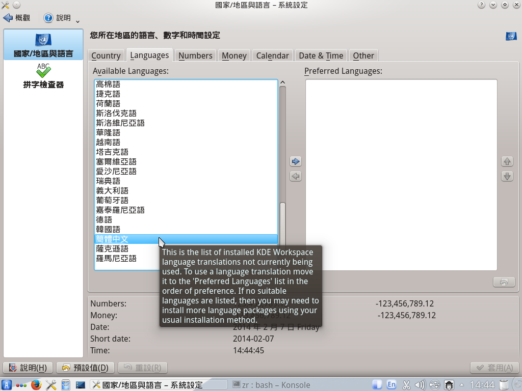 将可选语言中的简体中文右移到偏好语言,稍等片刻后重启。