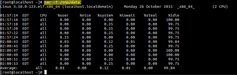 Linux 3.10.0-123.el7.x86_64 (localhost.localdomain) Monday 26 October 2015 _x86_64_ (2 CPU)