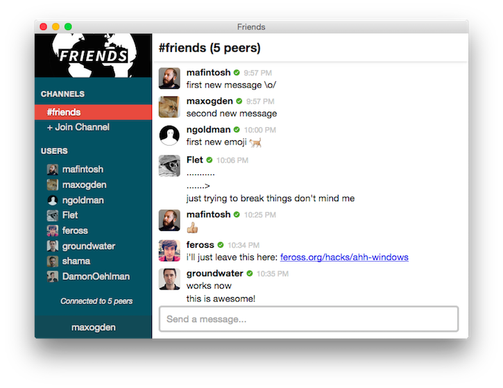 - moose-team / friends https://github.com/moose-team/friendsfriends 是一个基于 Web 的点对点聊天工具,用到了 WebRTC 技术,如果需要学习关于这方面的知识,看他的源码还是很有意思的。