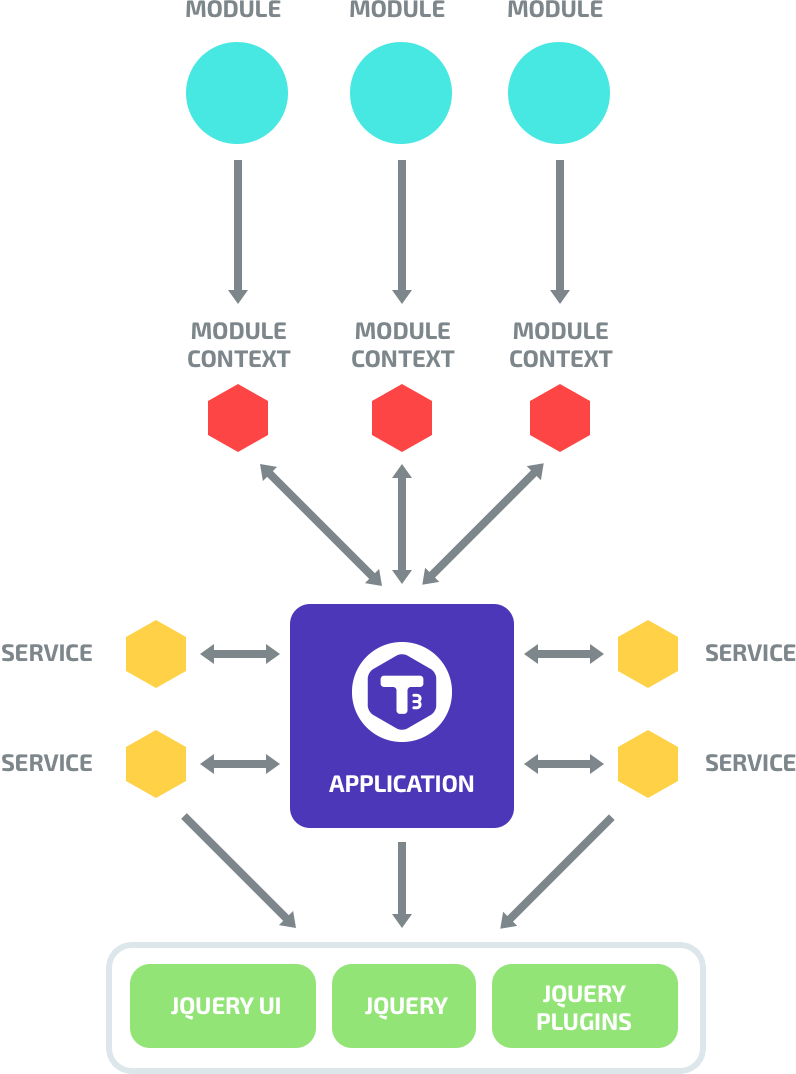 T3 是大多数 JavaScript 框架不同。它的意思是小块的整体架构,它允许你建立可扩展的客户端代码。