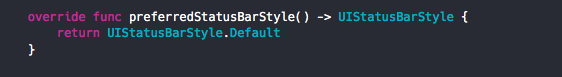 UIApplication.sharedApplication().setStatusBarStyle(UIStatusBarStyle.Default, animated: true)