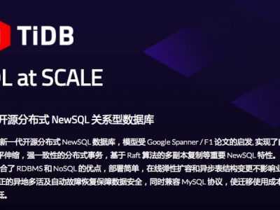 Linux中国 PingCAP 推出 TiDB 1.0 TiDB 是一个开源的分布式混合事务/分析处理 (HTAP) 数据库,它使企业能够使用单个数据库来满足这两个负载。 By Rain2017 年 10 月 27 日