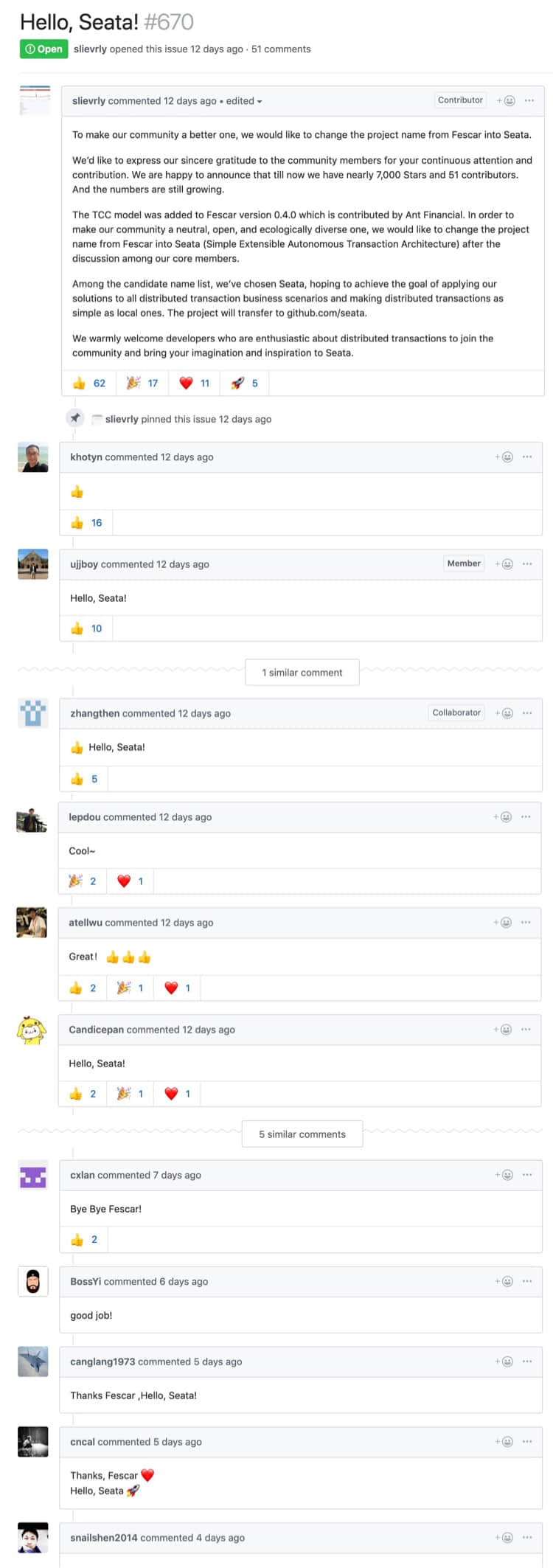 近日,分布式事务 Fescar 更名为 Seata。在 GitHub 上的项目地址相应的变更成: https://github.com/seata/seata。