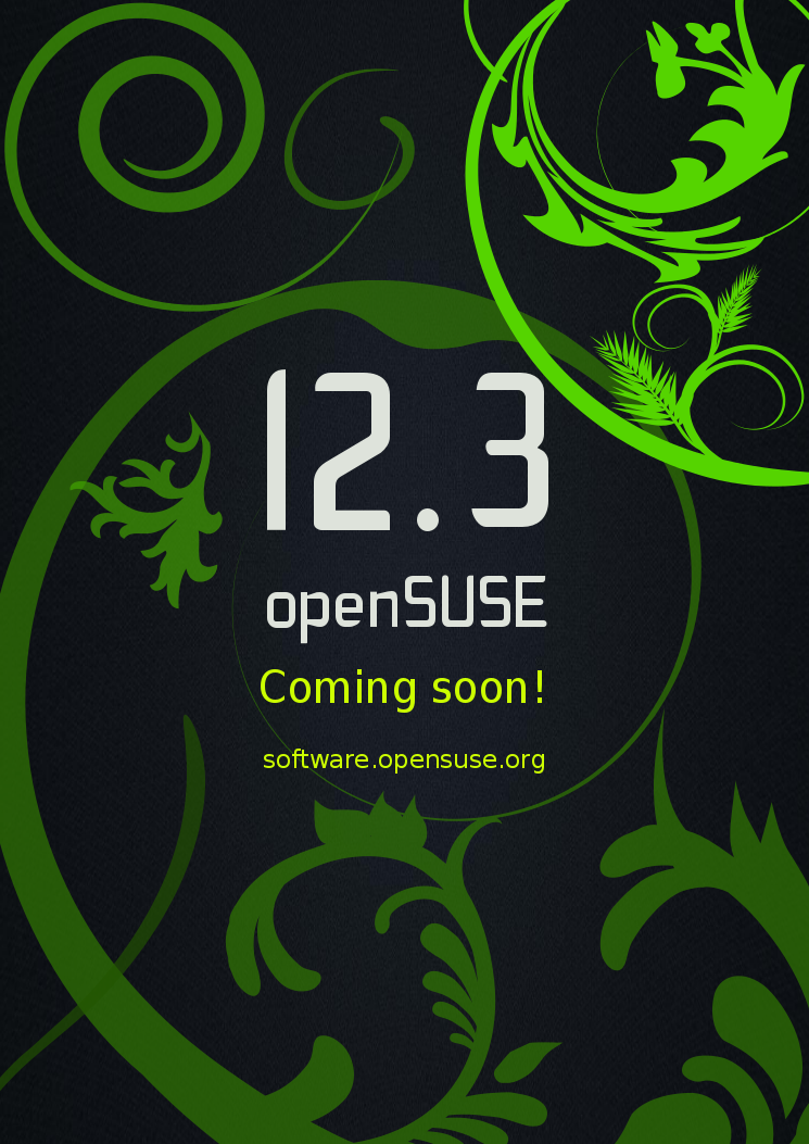 OpenSUSE 12.3 Chungking Release Party。 沒辦法再等下去了,期待已久的OpenSUSE新版本12.3,終於在夏天到來之前來到我們的身邊啦。經過六個月的精心料理,這道以自由和開源之名炮製的佳肴薈萃,在獨一無二的綠色點綴下 —— 穩定,友好,有趣,優雅並且強大。