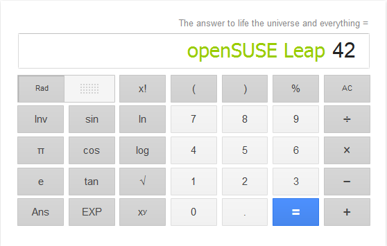 故事讲完了,大家可以跟着小编一起回到今天的主题,那就是昨天晚上2015年11月4日 20:00左右,openSUSE 项目发布了其最新的 openSUSE Leap 42.1 系统,很多朋友都知道,openSUSE 的上一个版本是 openSUSE 13.2,那么随之而来的就是大家接踵而至的好奇心,为什么这次版本号突然大跃进到了 42,为什么版本号不是 13.3 或者 14.1,就算是 13.2.1也能接受啊!但是我们毕竟 too young, too naive,读懂前面故事的朋友肯定知道 42 意味着什么, 英国作家道格拉斯·亚当斯在《银河系漫游指南》中写到的这个数字“42”,被称作 “生命、宇宙以及任何事情的终极答案”,不信你可以问 Google (“the answer to life, the universe and everything” on Google);没错,第一段开始的故事就是来自于《银河系漫游指南》的描绘。