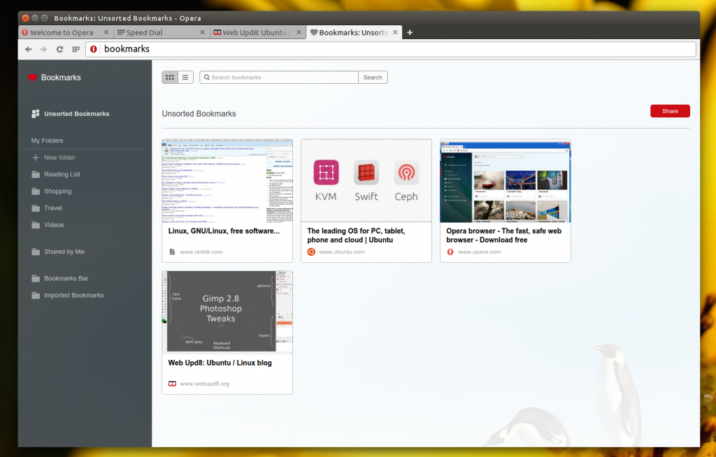 This is the first stable Opera version available for Linux since Opera 12.16, which was released almost a year and a half ago.