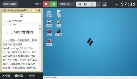 点击开始实验,一秒就开启我们的在线Linux系统,进入学习界面。左边是学习文档,右边是操作环境,边看文档边操作,参与感和互动性很强。课程文档的下方还可以写笔记和截图,遇到问题也能够直接通过问答提问。