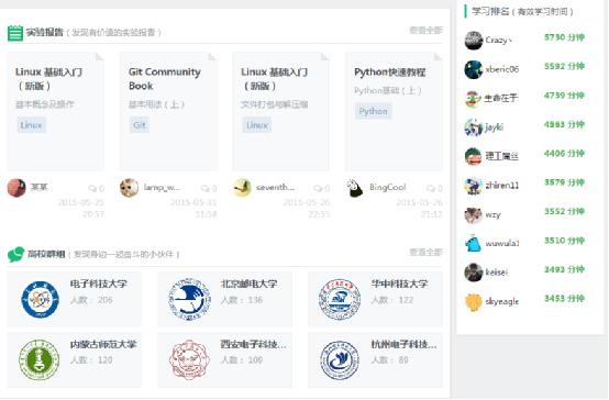 实验楼的发现版面是一个用户学习后的内容输出板块,你能够在实验报告的栏目中找到其他用户在学完课程后撰写的实验报告,发现一些有价值的实验报告,对自己的学习也是很有帮助的。高校群组让你能够找到自己在实验楼的同校好友,一起来看看有多少同校的学生在和你一起学习。