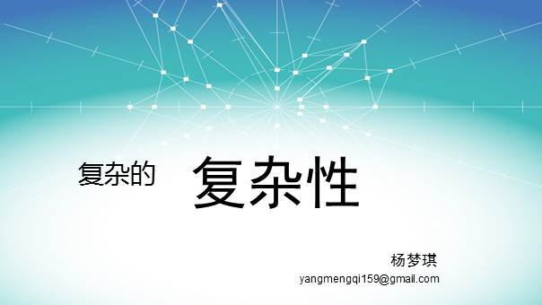 1+1≠2,也就是说当两个相同的物体相加时,很多情况下并不会涌现出理所当然的2;世界上每两个人之间的联系不会超过6个人,所以你和奥巴马之间相互有联系的人不会超过6个;当问题规模越来越大,约束条件越来越多的时候我们需要考虑算法的复杂性……