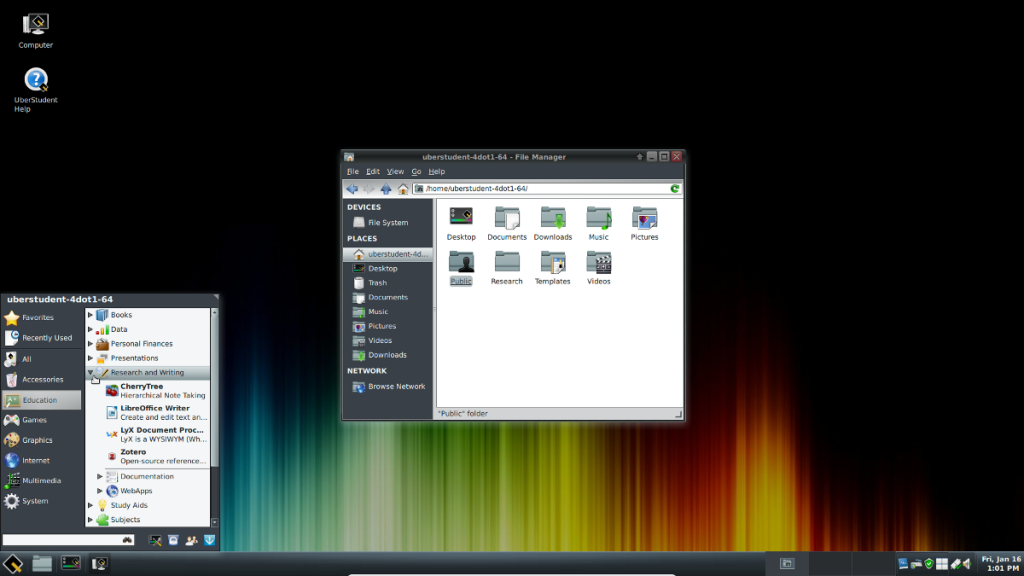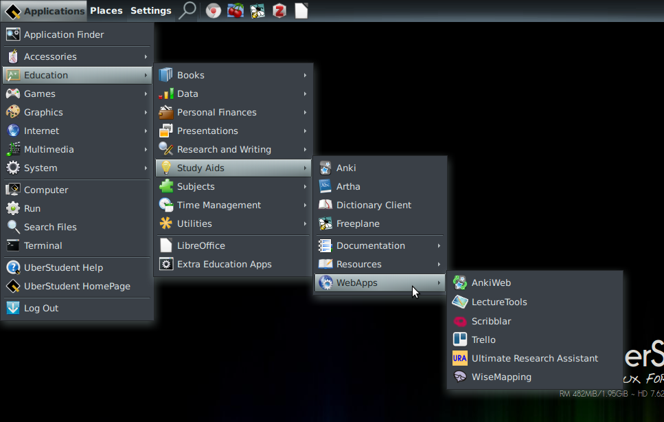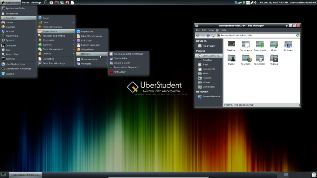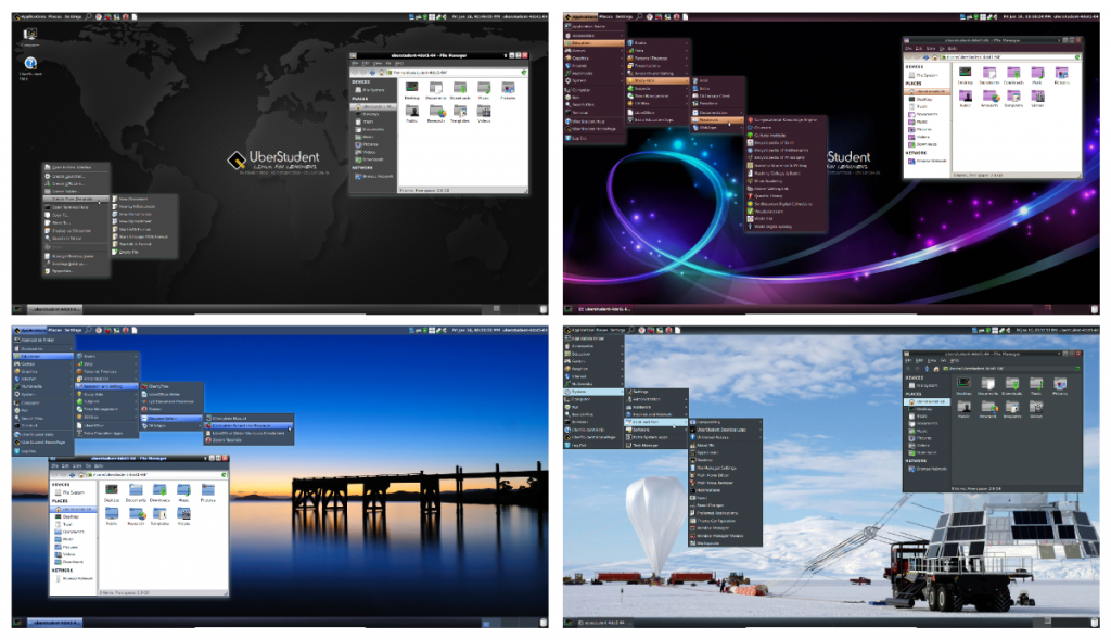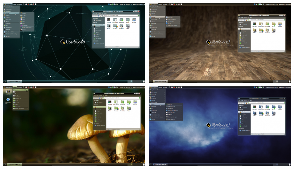 听过大名鼎鼎的 Uber,但是没听过 UberStudent 吧?(其实 Linux Story 小编也是第一次接触),UberStudent 是一个基于 Ubuntu 的发行版,也是一个半滚动更新的发行版,一般6-12个月发布一次新版本。特别适用于那些教育程度较高的计算机专业学生,比如在计算机编程课课堂,或者承担着大量计算任务的高分子物理实验室,这些科研工作者这样的场合尤其适合。虽然大多支持是面向 Linux 老鸟,但是同时也包含了很多专门针对 Linux 入门用户的特别设计。看来没有哪一个 Linux 发行版宣称它会放弃初级用户,这是一个好消息。