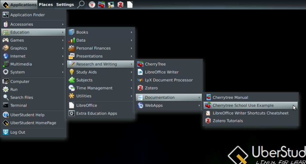 跟很多基于 Ubuntu 的发行版不一样的是,UberStudent 的恋爱史异常复杂,父系代码来源很广,除了 Ubuntu,UberStudent 也直接从 Debian 引入很多代码,从 Linux Mint 直接借鉴,但是不是简单地 fork,UberStudent 使用的是自己的软件仓库,有数百款只有 UberStudent 别处都找不到的软件。