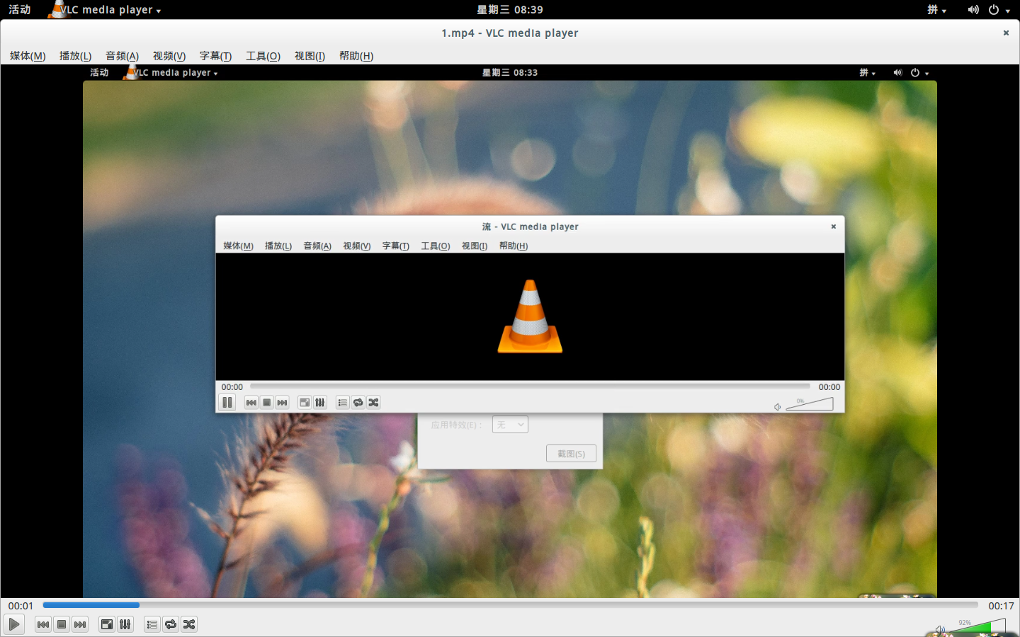一旦开始之后VLC就会将当前的屏幕操作录制到之前选定的目标文件,大功告成时您只需要单击VLC播放器下端的停止播放按钮。