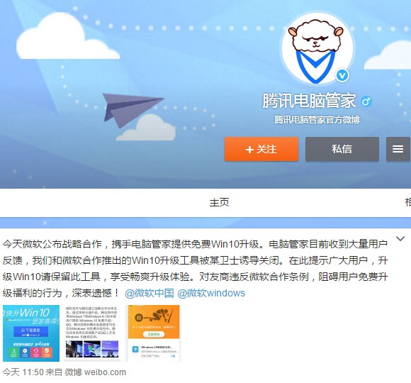 騰訊與360將會通過各自的「安全軟體」向國內用戶提供 Windows 10的升級更新。以致消息一出 360 和騰訊就在中國廣大的盜版 Windows 上開始了新一輪的撕逼大戰。但微軟與包括聯想在內的三個合作廠商都沒有十分明確的說明: